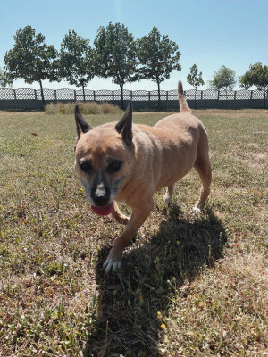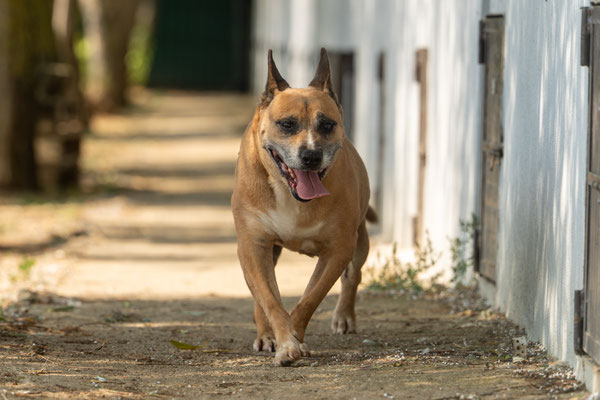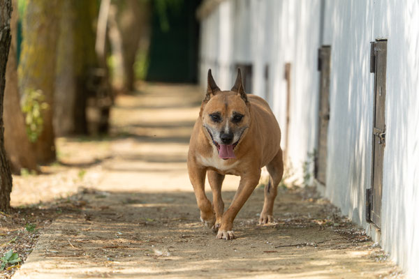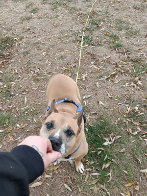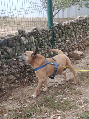 Betty kam im Oktober 2019 mit 25 weiteren Hunden aus dem städtischen Tierheim Danyflor zu uns ins Casa Cainelui. Sie ist eine super freundliche Hündin, die sich sofort an die Gitterstäbe ihres Zwingers drückt, wenn sie bemerkt, dass sich ihr Helfer nähern. Zu Beginn ist sie dann noch sehr aufgeregt. Bemerkt sie jedoch, dass Zeit für sie mitgebracht wurde, genießt sie die langen Streicheleinheiten, legt sich hin und kommt sichtlich zur Ruhe. Sie fordert sich die Nähe ein, ohne dominant zu sein. Eine große Freude wird ihr bereitet, wenn sie in den Freilauf darf. Das Anleinen klappt problemlos und sie läuft ruhig neben einem her. Im Freilauf scheint sie in ihrem Element und nutzt die Zeit für ein ausführliches Beschnuppern, rennt freudig umher und sucht zugleich immer wieder die Nähe zu den Helfern, um sich kraulen zu lassen. Eine rundum liebe Seele.