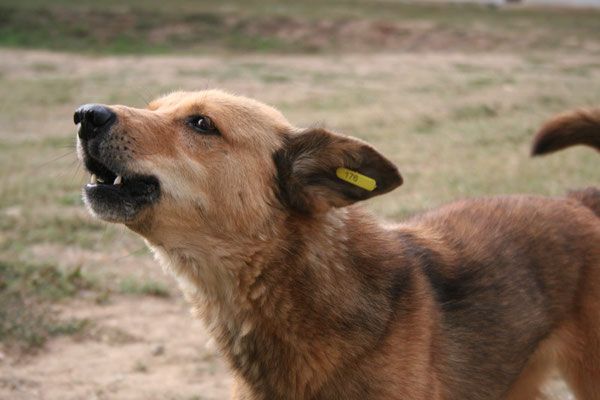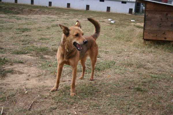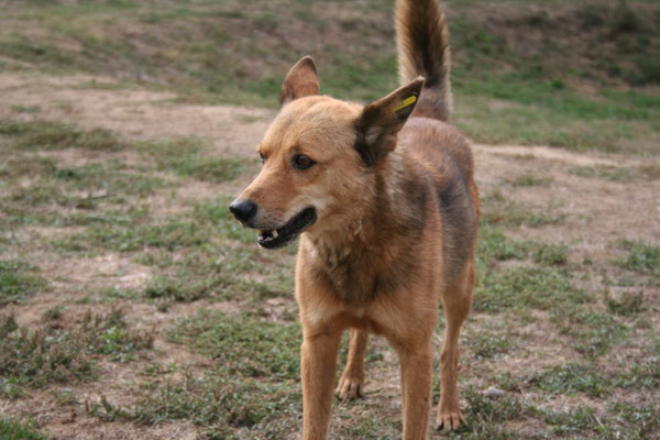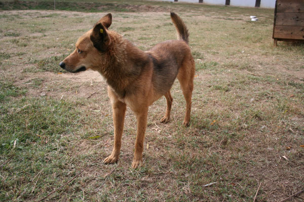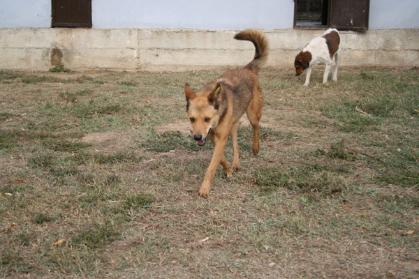 zugeworfene Leckerlis. Im Zwinger lässt sie sich auch schon streicheln, kann dies aber noch nicht ganz genießen.