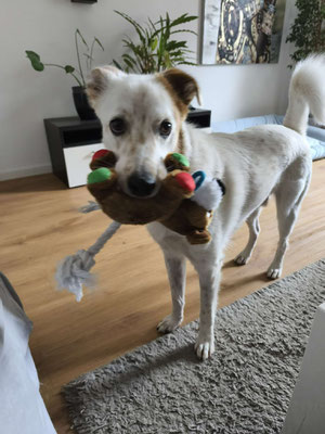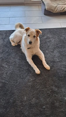 Ende Mai 2025 durfte Felix nach Deutschland in sein Zuhause ziehen. Dort zeigt sich, dass der hübsche Rüde keine Berührungsängste hat, gerne kuschelt, die Welt neugierig erkundet und seine Artgenossen zum Spielen auffordert. Allerdings benötigt Felix eine ruhige aber konsequente Hand. Denn auf Korrekturen reagiert er sensibel und seine "Beute" möchte er ungern hergeben. Autofahren ist für ihn kein Problem, hier springt er sogar gerne rein. Kommandos wie "Sitz", "Platz" und "Stopp" kennt er bereits. Aktuell kann er noch nicht alleine bleiben, dass muss im neuen Zuhause in kleinen Schritten neu aufgebaut und beigebracht werden.