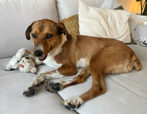 Kaleo durfte nach sehr langem Warten dann im Mai 2025 dem Casa endlich den Rücken kehren. Doch leider muss Kaleo jetzt neu vermittelt werden. Warum? Die Adoptanten hatten schnell bemerkt, dass Kaleo ungern bzw mit Schmerzen die Treppen läuft und sind daher zum Tierazt gefahren - die Diagnose - schwere Spondylose. Kaleo darf nun, aufgrund dessen, keine Treppen mehr laufen.