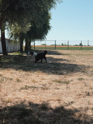 Im Freilauf strahlt Rosa Lebensfreude pur aus, flitzt durch den Freilauf, in den Zwinger rein und wieder raus und powert sich vollkommen aus. Dort ist sie mutiger, kommt zwischen ihren Runden auf den Menschen zu und berührt einen auch mal kurz, indem sie einen abschnüffelt.