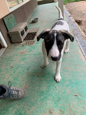 Der hübsche Simon kam gemeinsam mit seinem Bruder, Saru, Anfang Juni 2025 zu uns ins Casa. Sie wurden ausgesetzt und alleine zurück gelassen. Zum Glück fand man die Beiden und so finden sie nun Sicherheit im Casa. Simon zeigt sich als ruhiger Welpe, der gerne in der Sonne faulenzt. Den Trubel der anderen Welpen nimmt er mit Gelassenheit und freut sich immer, wenn ein Helfer oder eine Helferin vorbei kommt. Unser kleiner Wonneproppen sucht nun noch ein Zuhause, in dem er sein Leben verbringen darf.