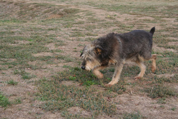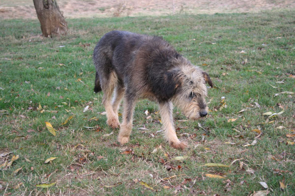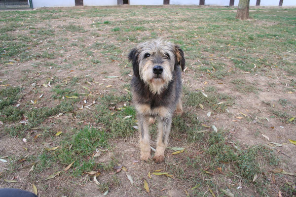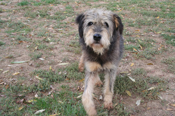 Bommel kam im April 2016 zu uns, er wurde zusammen mit 50 anderen Hunden aus dem städtischen Danyflor geholt. Leider ist er noch immer sehr unsicher was Begegnungen mit Menschen und auch teilweise anderen Hunden angeht. Am liebsten würde er nicht gesehen werden. Augenkontakt wird gemieden und bereitet ihm viel Stress. Berührungen sind noch immer nicht möglich. So sehr er sich auch über den Auslauf auf der Wiese mit seinem Zwingerkumpel freut, so sehr freut er sich auch wieder in den Zwinger zu dürfen. Paar Minuten ausruhen, dann darf es aber auch wieder rausgehen. Bommel scheint diese Momente der Ruhe immer wieder zu brauchen, weswegen wir uns für ihn ein Zuhause mit viel Hundeerfahrung wünschen. Auch ein vorhandener Hund wäre für Bommel mit Sicherheit von Vorteil. Verträglich zeigt er sich stets, hat aber vor stürmischen Hunden Angst und möchte sich dann verkriechen.