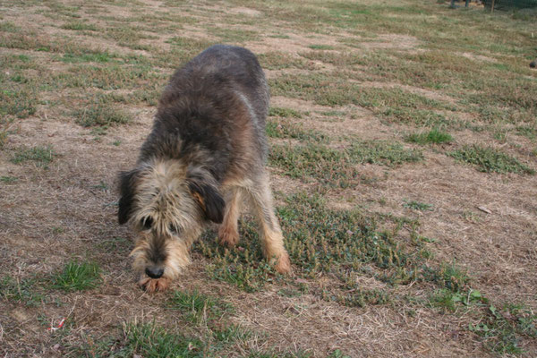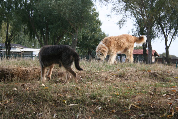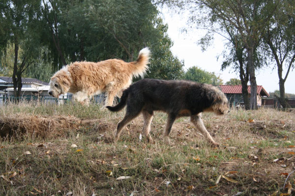 Im Juni 2025 wurde Bommel geschnitten und siehe da - frisch frisiert kam ein wunderschöner Rüde zum Vorschein. Bommel kann den Freilauf mittlerweile mit seinem Zwingerfreund Bert sowie mit Resi und Orpheline genießen und ist an vielerlei Eindrücken aus der Umwelt interessiert. Dennoch ist er ein ruhiger Vertreter und bevorzugt Leckerlis nach wie vor vom Boden aufzulesen oder vorsichtig aus der Hand zu nehmen. Wir wünschen Bommel und seinem langjährigen Zwingerfreund Bert ein schönes und ruhiges Zuhause - nach Jahren mit vielen kleinen Fortschritten hätten sie es sehr verdient.