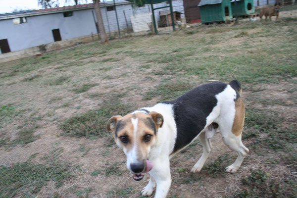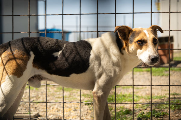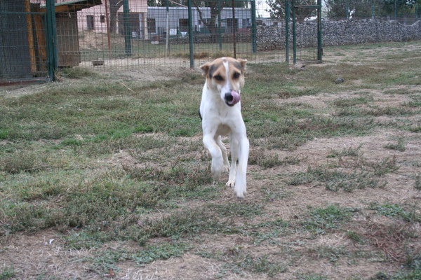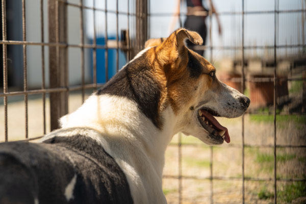 Jerry wurde in der Nähe des Casas aufgegriffen und kam so im Oktober 2024 zu uns. Der hübsche Rüde zeigt sich interessiert am Menschen, hält aktuell aber lieber noch Sicherheitsabstand. Sicherlich wird er sich mit der Zeit noch mehr an die Helfer*innen gewöhnen und so auch noch zutraulicher werden. Den Freilauf genießt Jerry bereits und freut sich, dort entlang zu flitzen. Aufgrund seiner kurzen Rute, darf Jerry nicht in die Schweiz vermittelt werden.