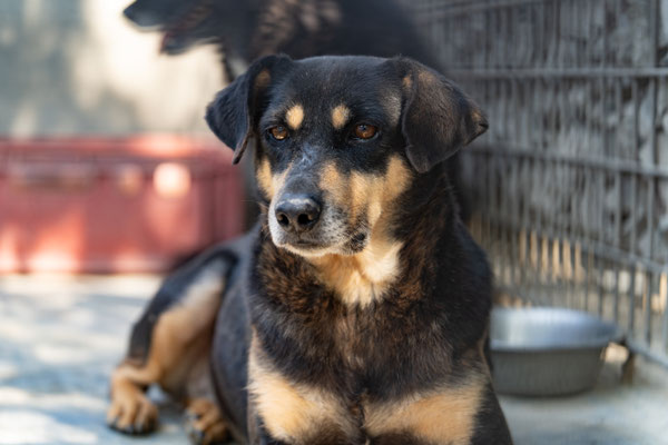 Inzwischen freut sich Luca sichtlich, wenn Helfer ihn in seinem Zwinger besuchen. Der hübsche Rüde sitzt aktuell mit einer Hündin zusammen im Zwinger und versteht sich gut mit ihr. Mit ihr flitzt er durch den Freilauf und traut sich nun auch schon Leckerlis bei den Menschen abzuholen.